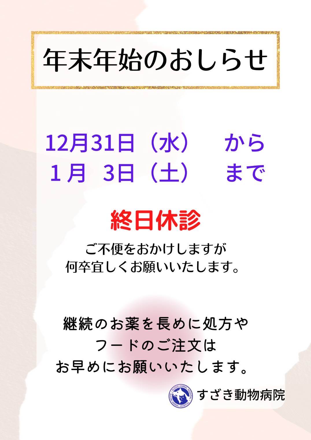 1月4日より通常通り診療いたします。よろしくお願いいたします。